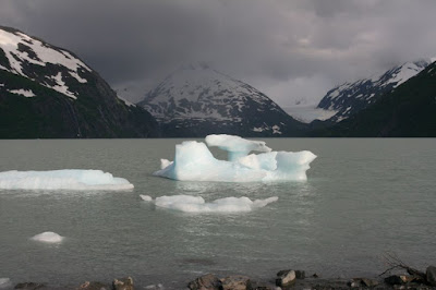 Terug aan wal op de terugweg van Whittier, ijsbergen in Portage Lake.