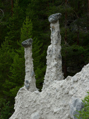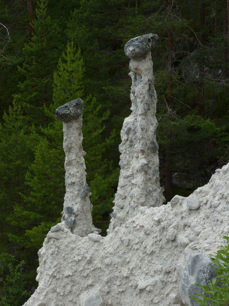Kvitskriuprestene. Eroding moraine material where large rocks, temporarily, protect the material below from erosion.