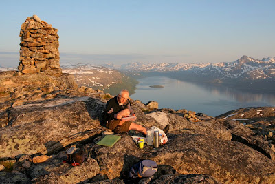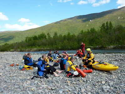 We have been paddling on rivers for 2 weekends in the last 2 weeks: first a river kayaking course, the same we took last year but now on local rivers. We didn't do any river kayaking after the course last year so wanted to refresh our technique and get some confidence back. We paddled on the rivers Målselva and Divielva. The second weekend was a river paddling gathering, a gathering to try to get local river enthusiasts together; a very good way for us beginners to get more experience. Unfortunately I don't have a waterproof camera (yet), so I don't have any photos from the paddling itself, but only from the (lunch) breaks and evenings. But a good account of the river kayaking course, in Norwegian, but with some action photos, can be found on the blog of one of the other participants at http://oddsvend.blogspot.com/2011/06/urs-i-elvekajakk-pa-malselva-og.html.